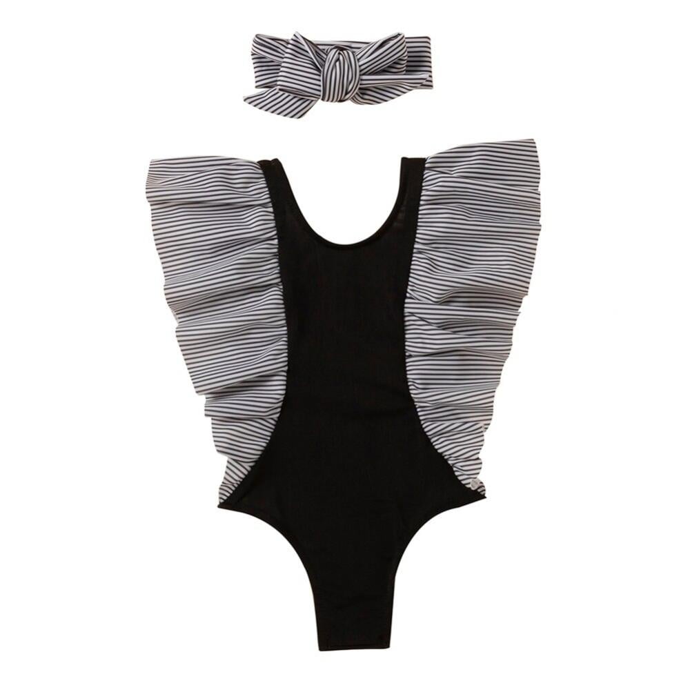 Baywell Toddler Girls Solid Color Ruffle Strap One Piece Swimsuit With Hairband Upf 50 Sun Protection Black 3 4y Walmart Com